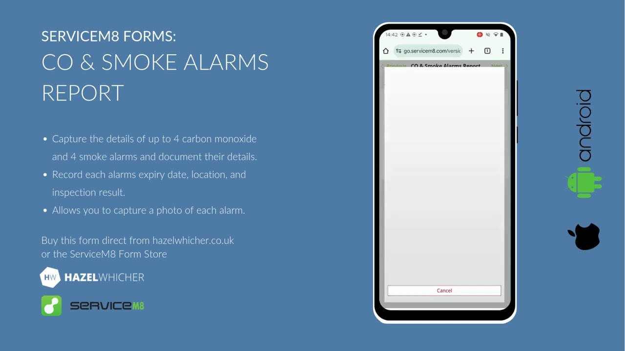 This CO & Smoke Alarms report form is designed for and fully compatible for use with ServiceM8.