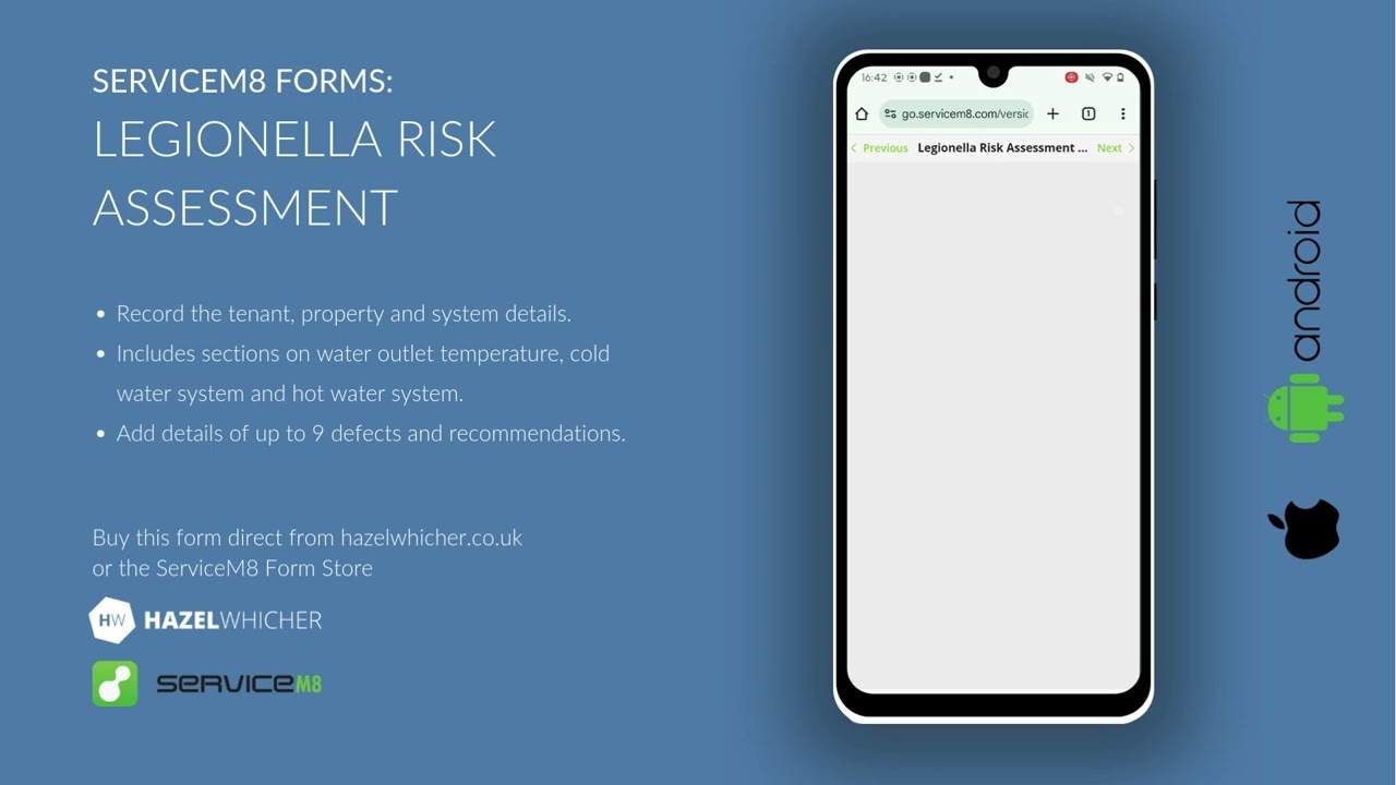 This Legionella Risk Assessment form can be used within ServiceM8 to create Legionella Risk Assessments on the go.